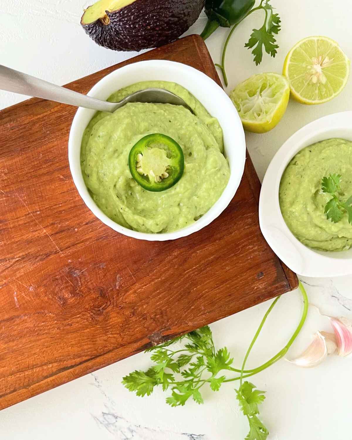 Just like most other dips and condiments, I would recommend storing it in an airtight container and refrigerating it. You can store the avocado crema in the refrigerator for up to 3 days. Make sure you always use a clean spoon to serve it and put the lid back on and refrigerate the leftovers immediately.