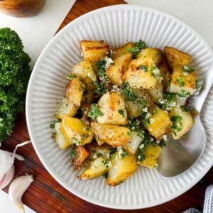 These crispy potatoes can also be the perfect side dish to go with any of your favorite soups. I think it would work wonderfully with a broccoli cheese soup. You can also pair these with an Italian main like Italian chicken cutlets or a hearty casserole like Mexican street corn casserole.