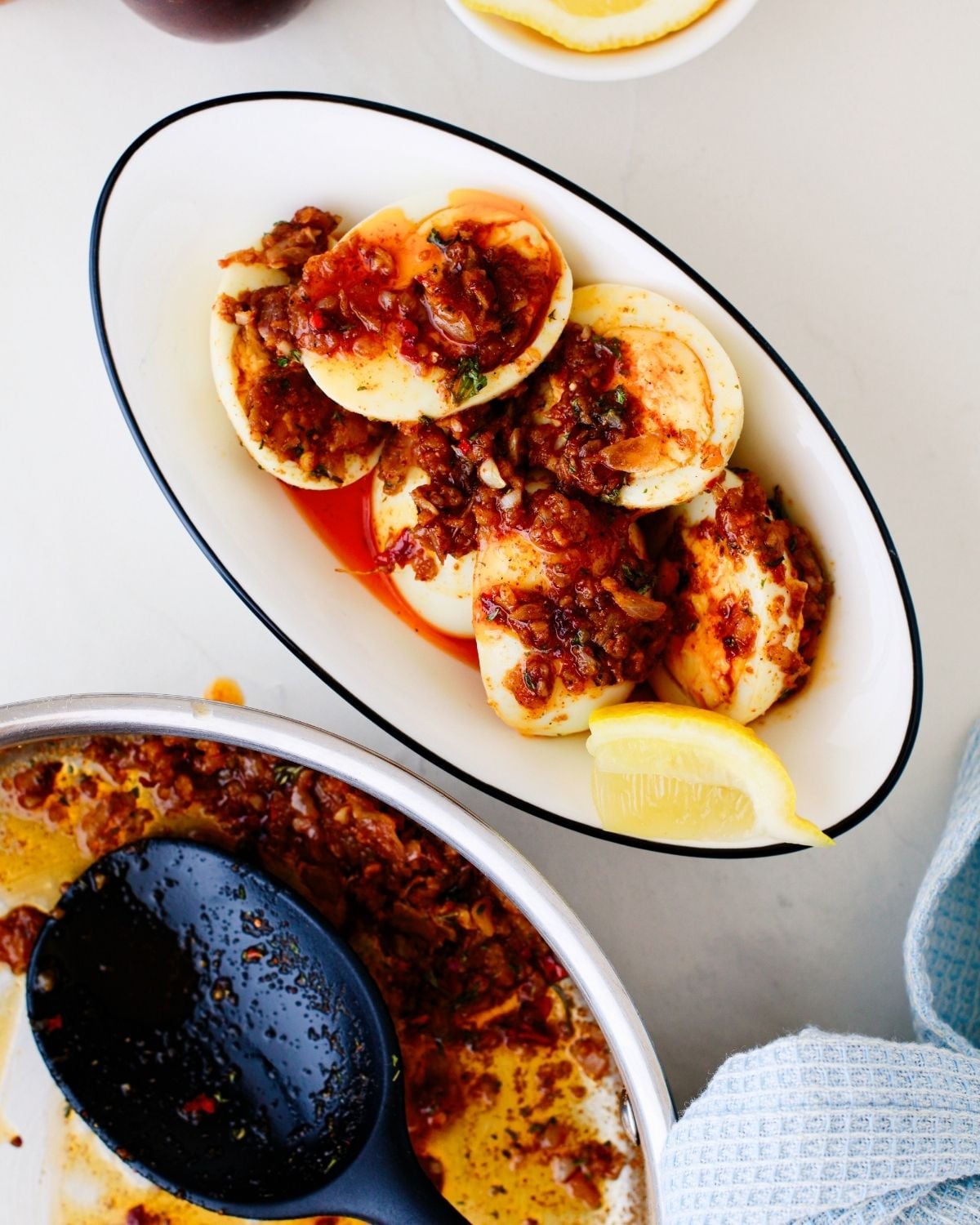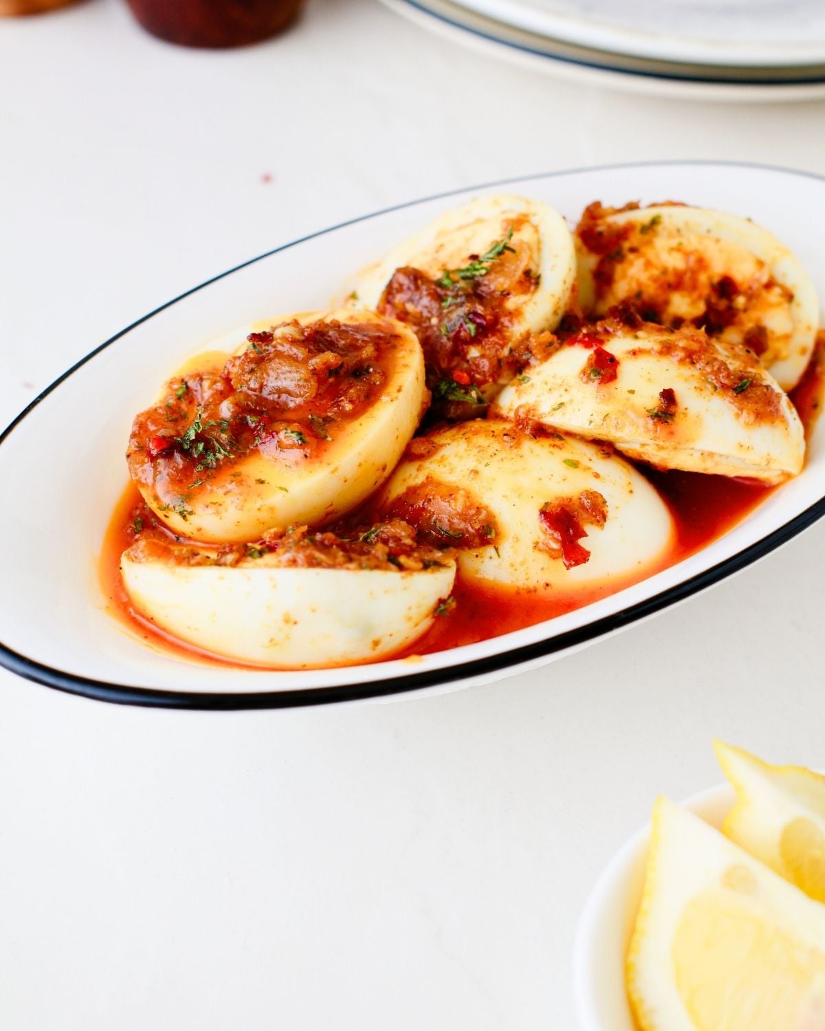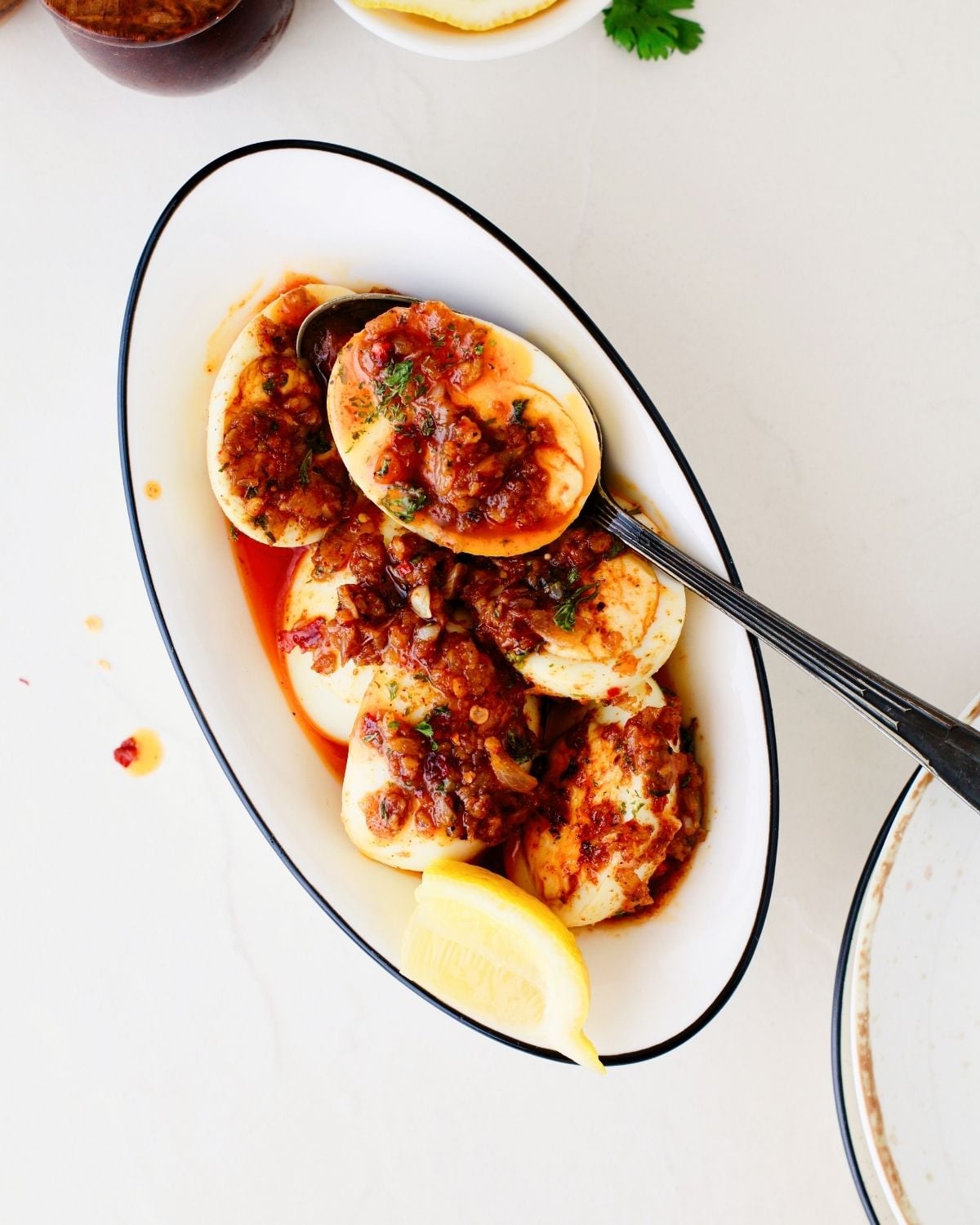 Enjoy this spicy Cajun egg boil on its own or pair it as a side to go with any of your mains. I love serving it with jasmine rice or my lemon dill rice to make it a light lunch. You can also serve it with a crusty bread of your choice- perfect to mop up all that delicious sauce.