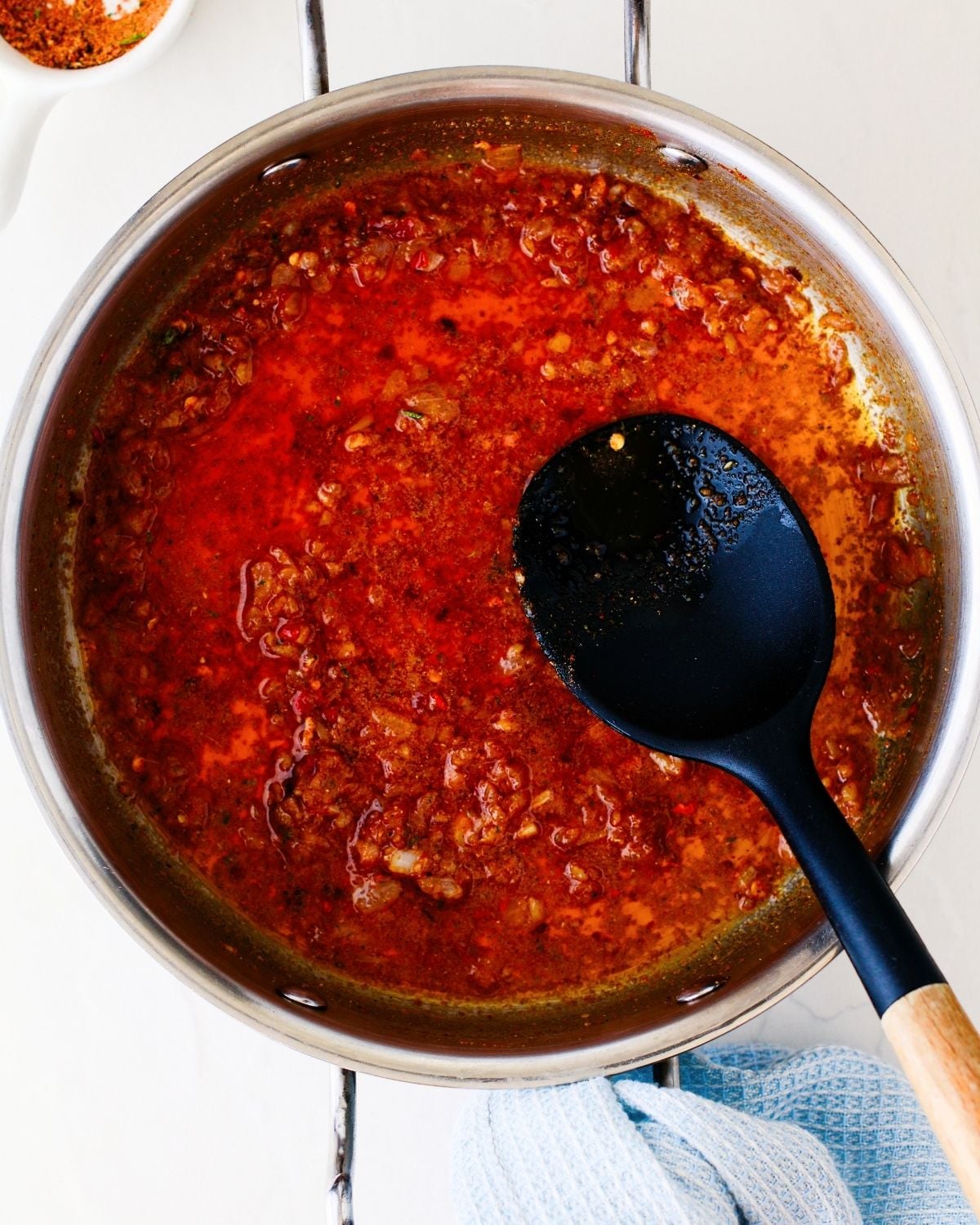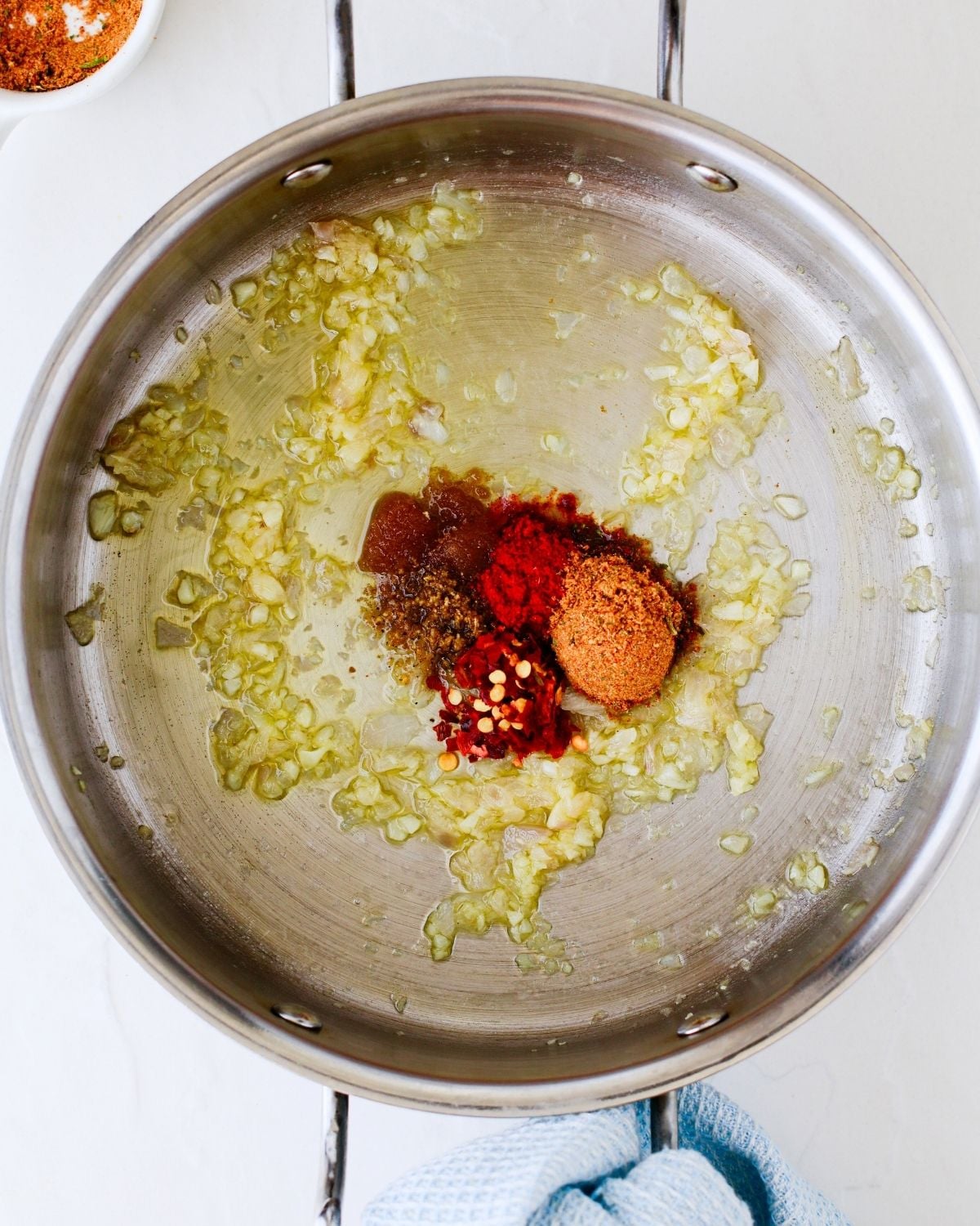 Turn the heat down when you're adding the seasonings and spices- you don't want them to burn!