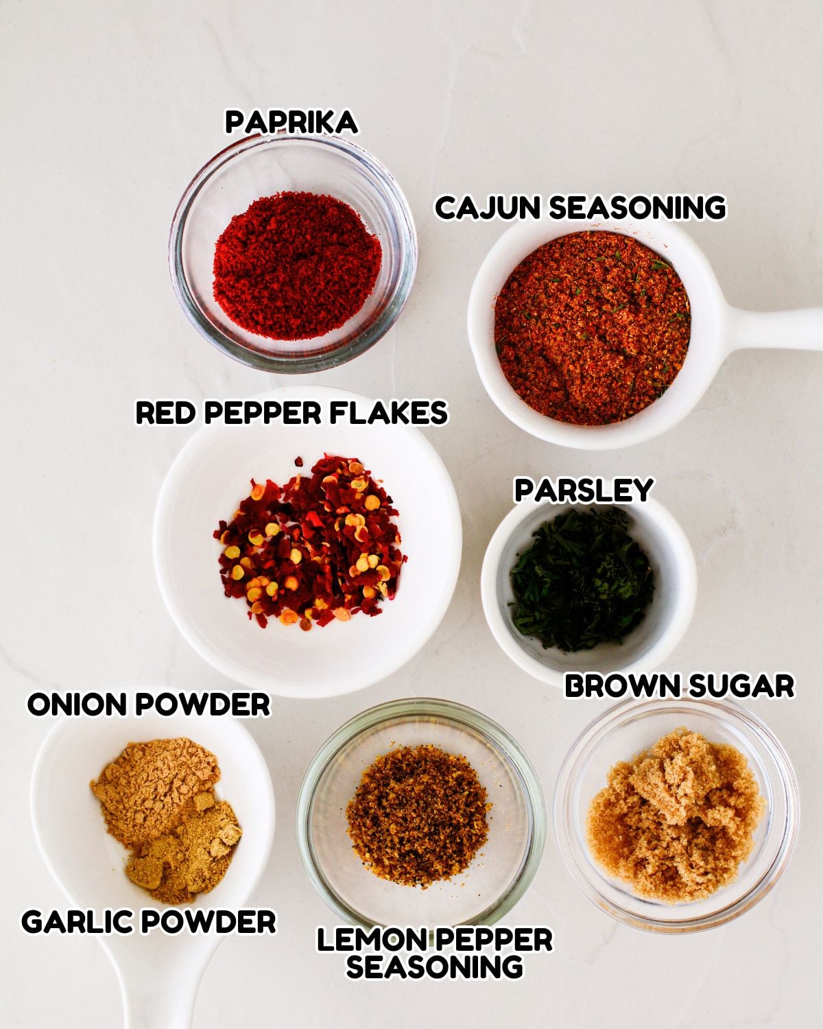Seasonings: To season, I used some onion and garlic powder, Cajun seasoning (or my homemade Creole seasoning), paprika, some red pepper flakes for the heat, my homemade lemon pepper seasoning and a dash of brown sugar to balance the heat.