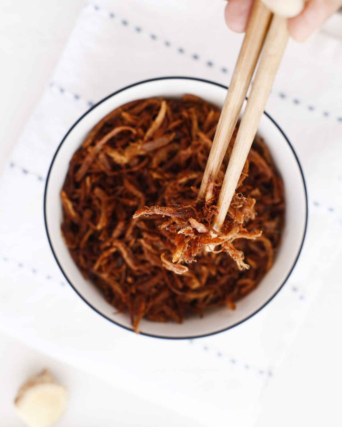 Best of all you'll just need around 30 minutes to make a jar full of this from scratch! Sprinkle some of it over a bowl of Yam Khai Dao or steaming hot Congee and a spoonful of scallion ginger oil to finish it all up!
