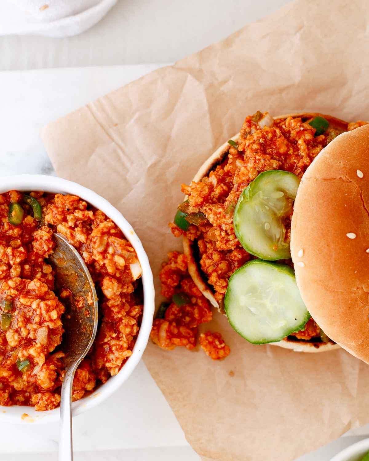 These chicken sloppy joes taste fantastic when paired with some French fries (especially my spicy curry fries) or a side of onion rings. I love serving these with my tobacco onions too! Don't forget to top the sloppy joes with some quick pickled red cabbage or a nice and crunchy sweet vinegar coleslaw.