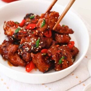 - 🥣Serving ideas: Serve the crispy chili chicken on its own, or with some coconut lime rice to make it more filling.