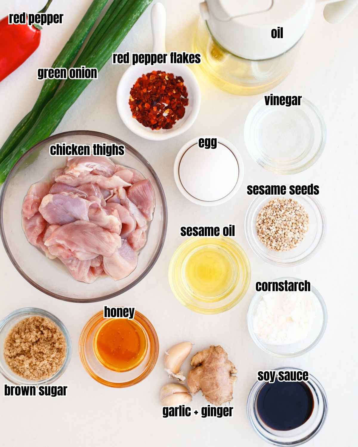 - 📋Main ingredients: Chicken, egg, cornstarch, oil, sauces, aromatics, seasonings, sesame seeds.