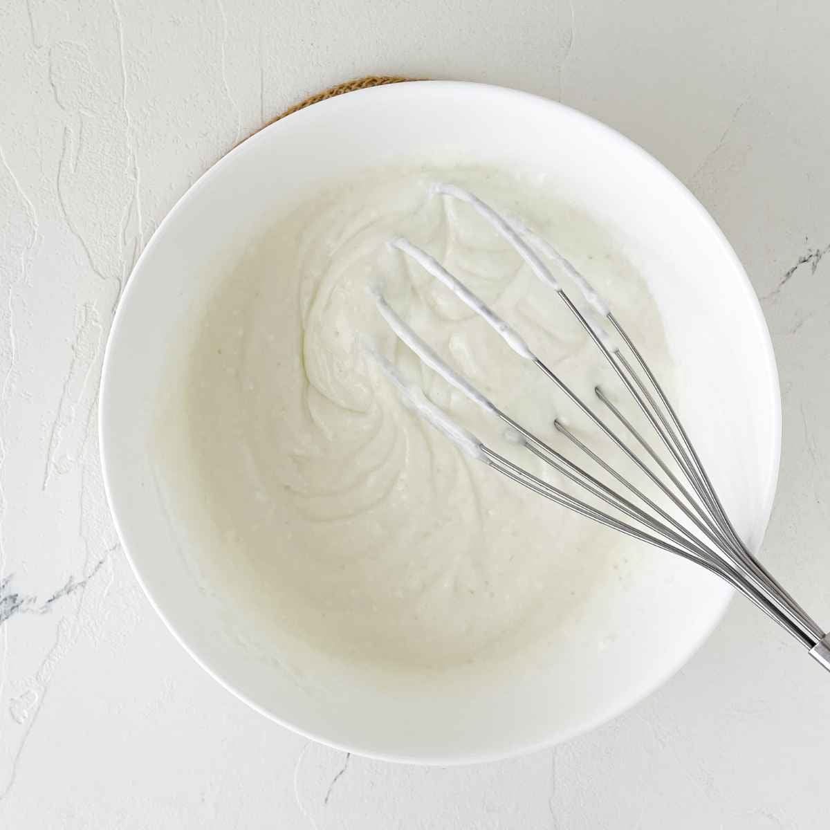 Step 1: In a large bowl, whisk the yogurt until smooth.