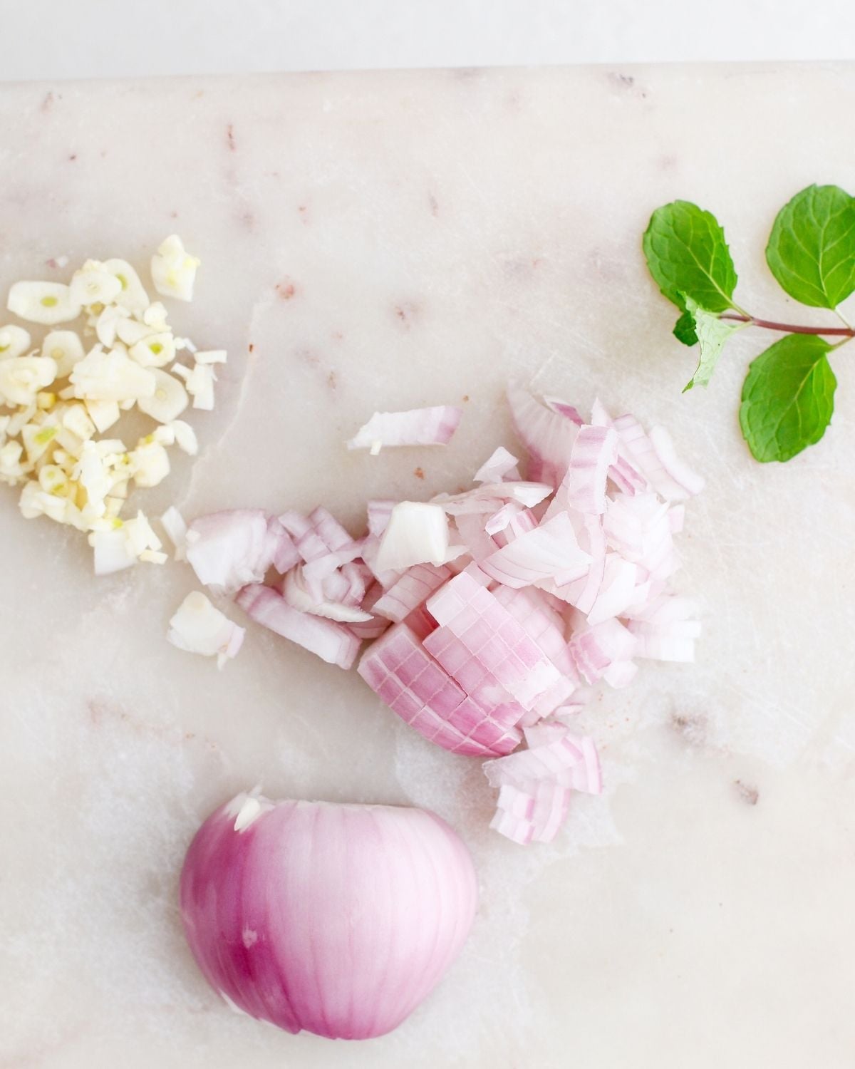 - Finish up with a squeeze of lemon juice, chopped mint leaves and some more salt and pepper.