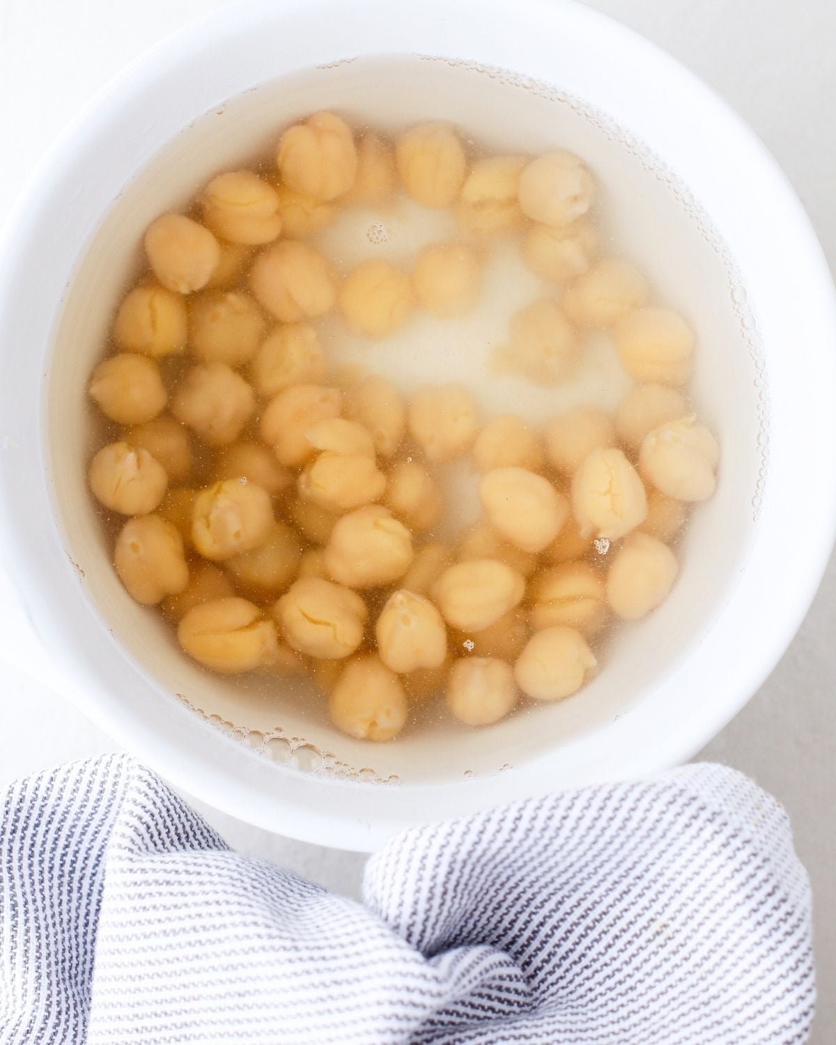 You can also start with raw chickpeas if you don't have the canned ones. Soak them overnight and then cook them until they're soft, but still hold their shape.
