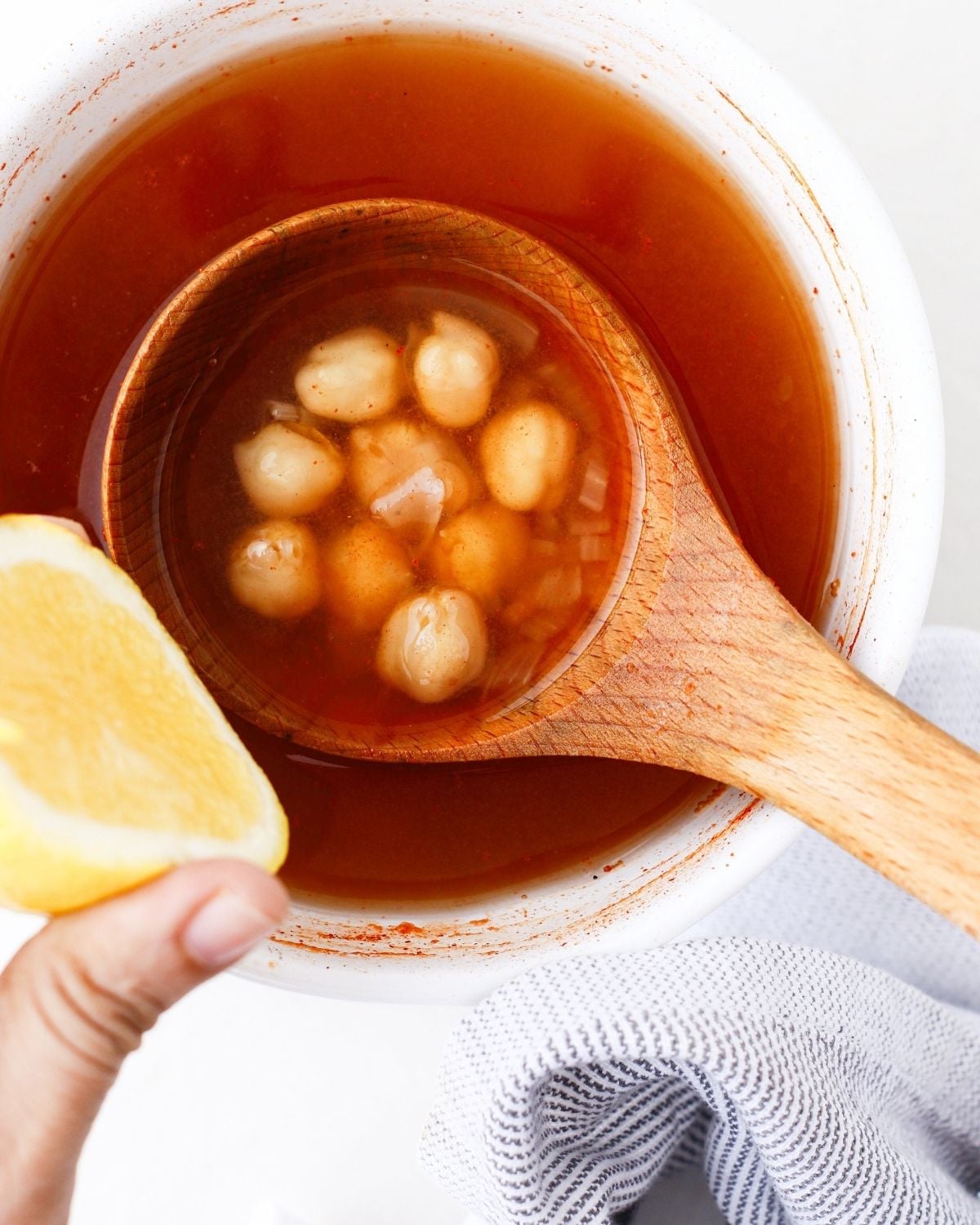 Earthy, slightly spicy and incredibly comforting, Halabessa is a popular Egyptian street food. This spicy chickpea soup comes together in less than 20 minutes, and is perfect to sip on and enjoy during the cold winter months.