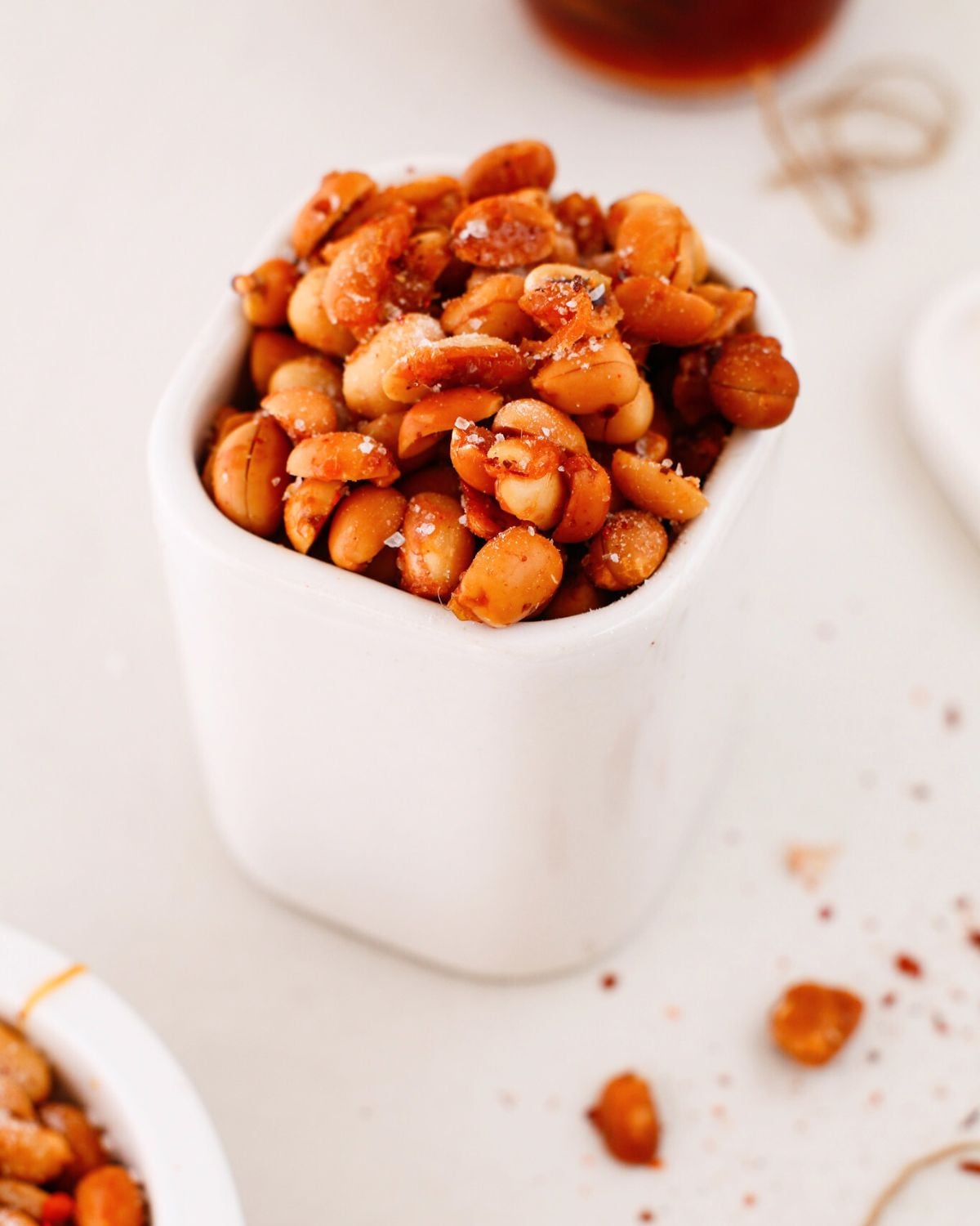 So of course, I love trying to make them from scratch whenever I can. My Tajin nuts and spicy roasted cashews have both been such big hits, and inspired by that, this time, I decided to try something using peanuts as the hero ingredient- and here we are!