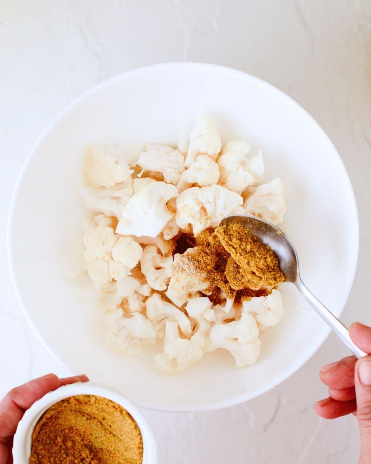 Cauliflower: I used a whole head of cauliflower here, cut into bite-sized florets.