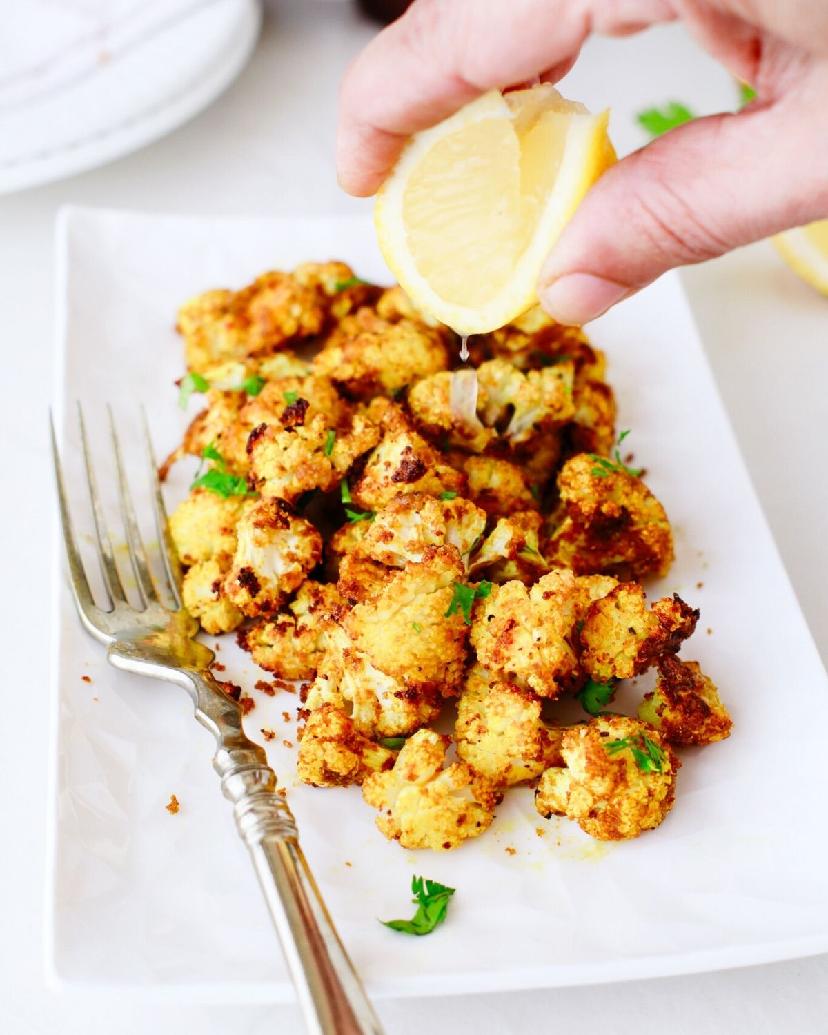 Lemon juice: Just a little, to drizzle over the roasted cauliflower before serving.