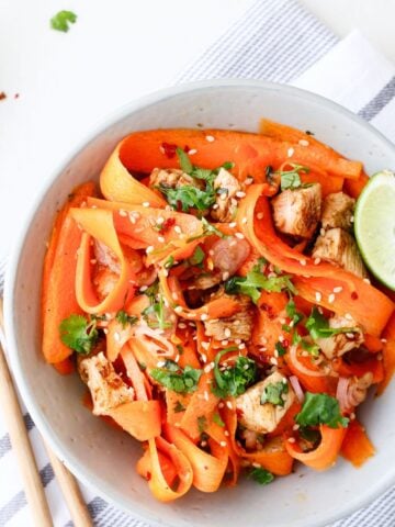 Lime juice: Lime juice (or lemon juice) brings some beautiful bright and citrusy flavors to the vinaigrette.