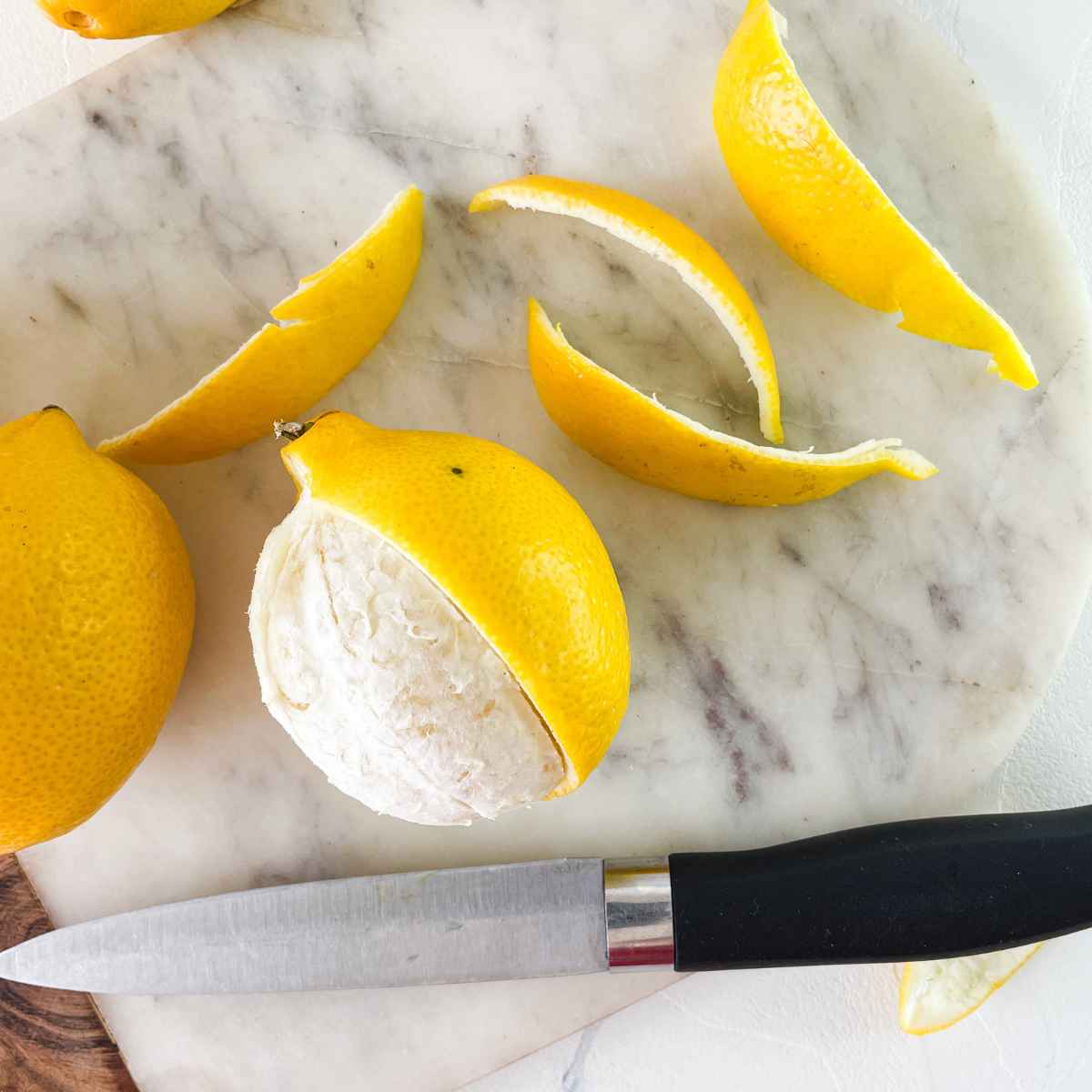 - Start by washing the lemon and peeling them using a vegetable peeler.