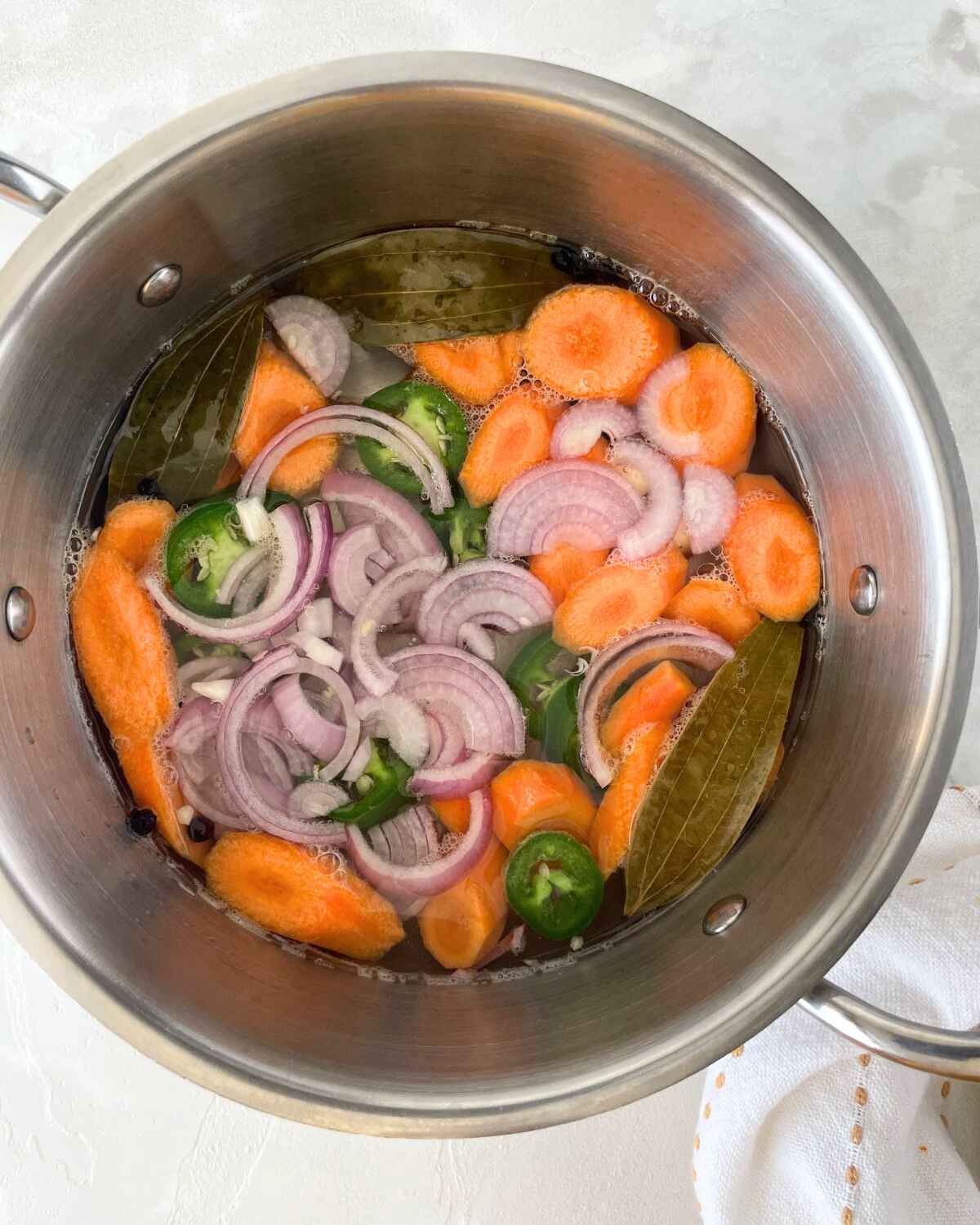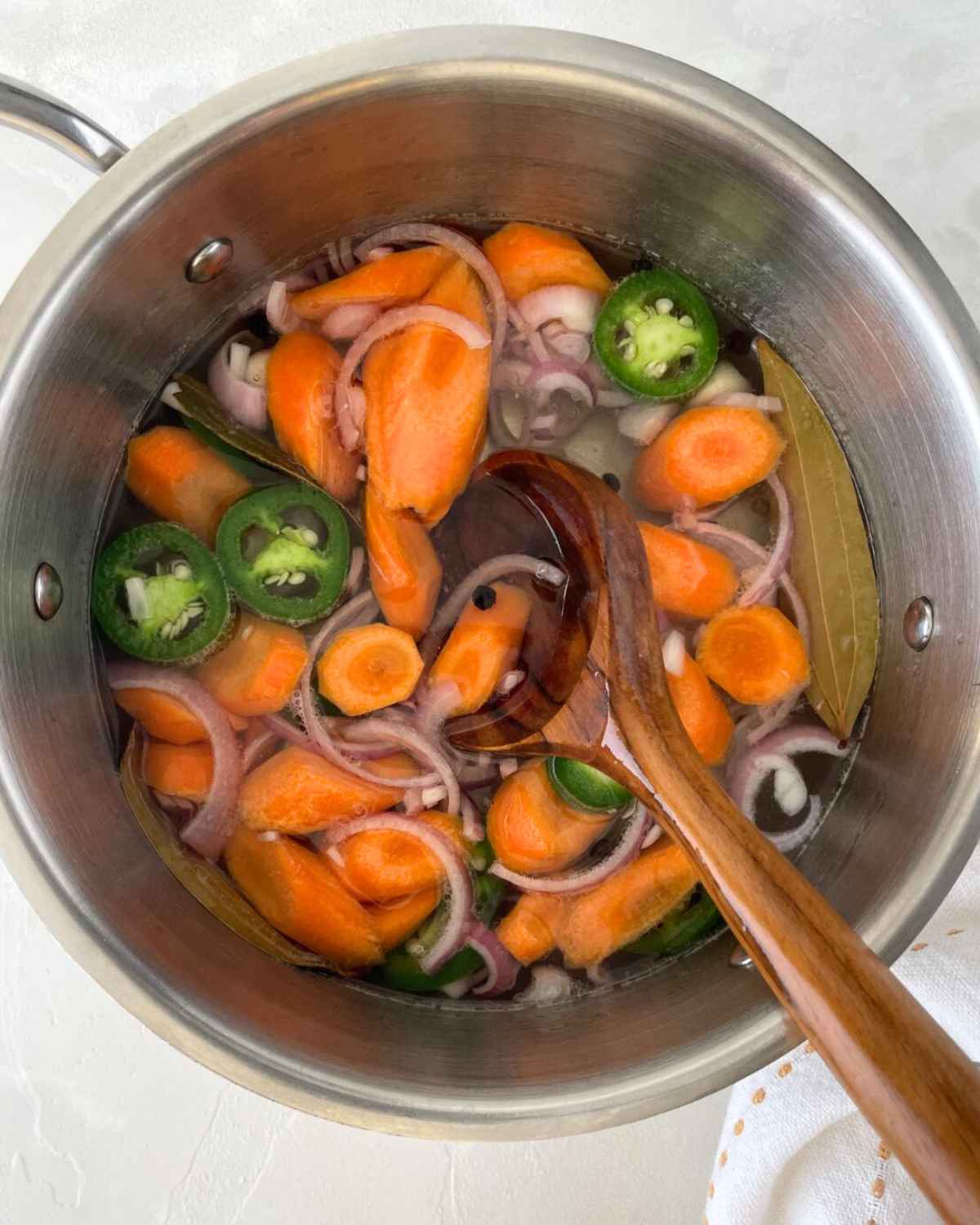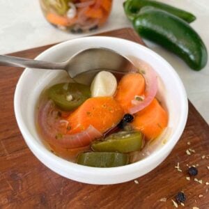 Jalapeno: To bring a kick of heat to the pickled veggies, you’ll need to use jalapeños. Use as many as you want, based on your spice tolerance.