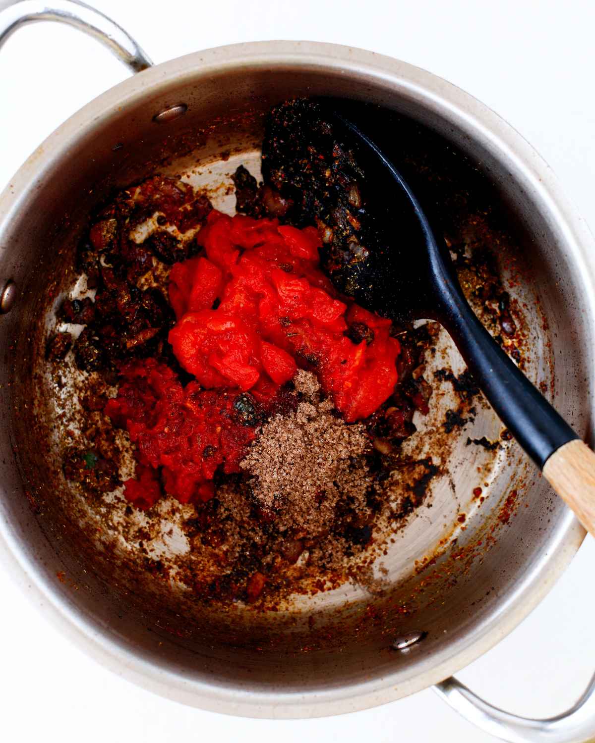- Add the brown sugar, tomatoes, Chipotle in Adobo and brown sugar. Mix well.