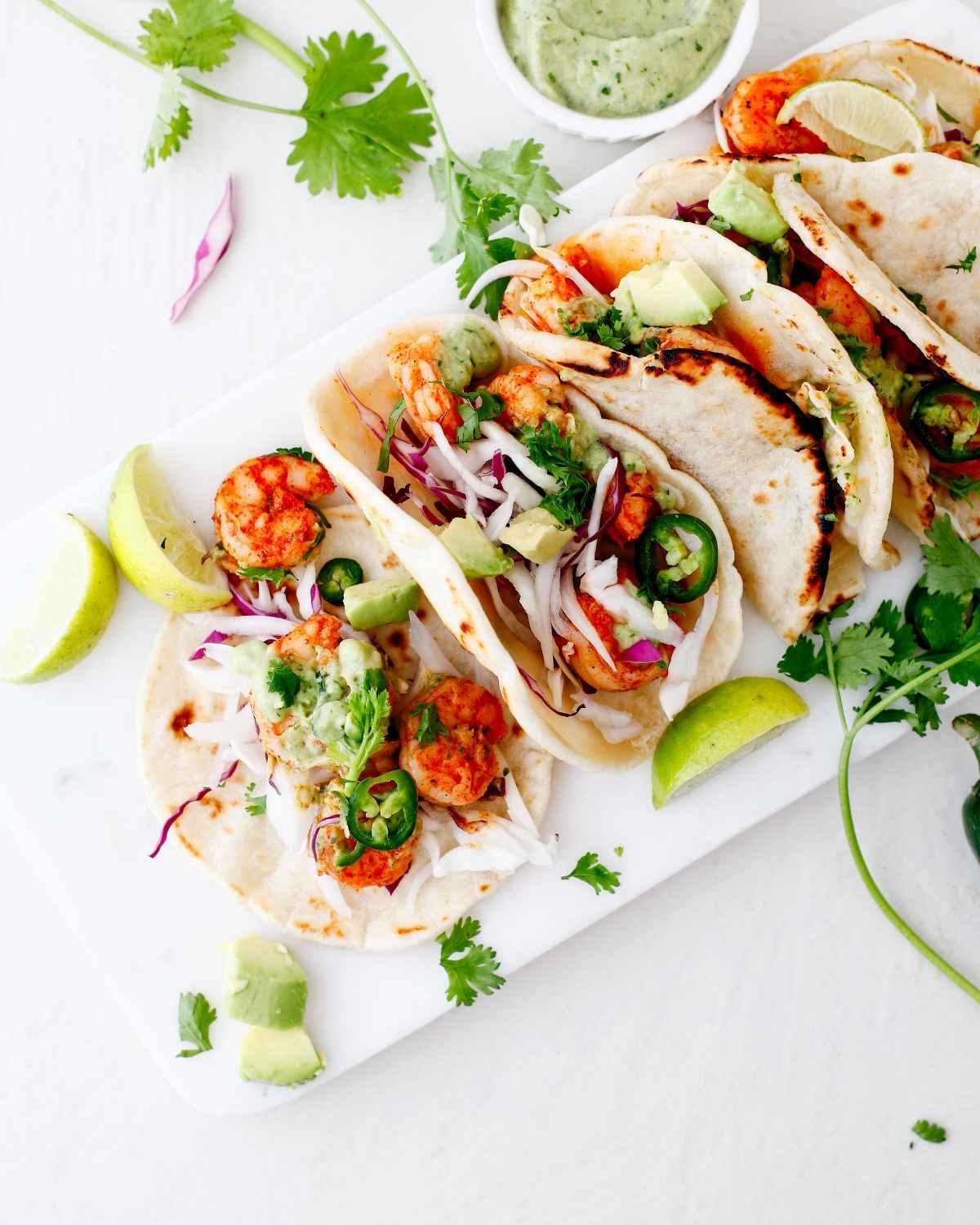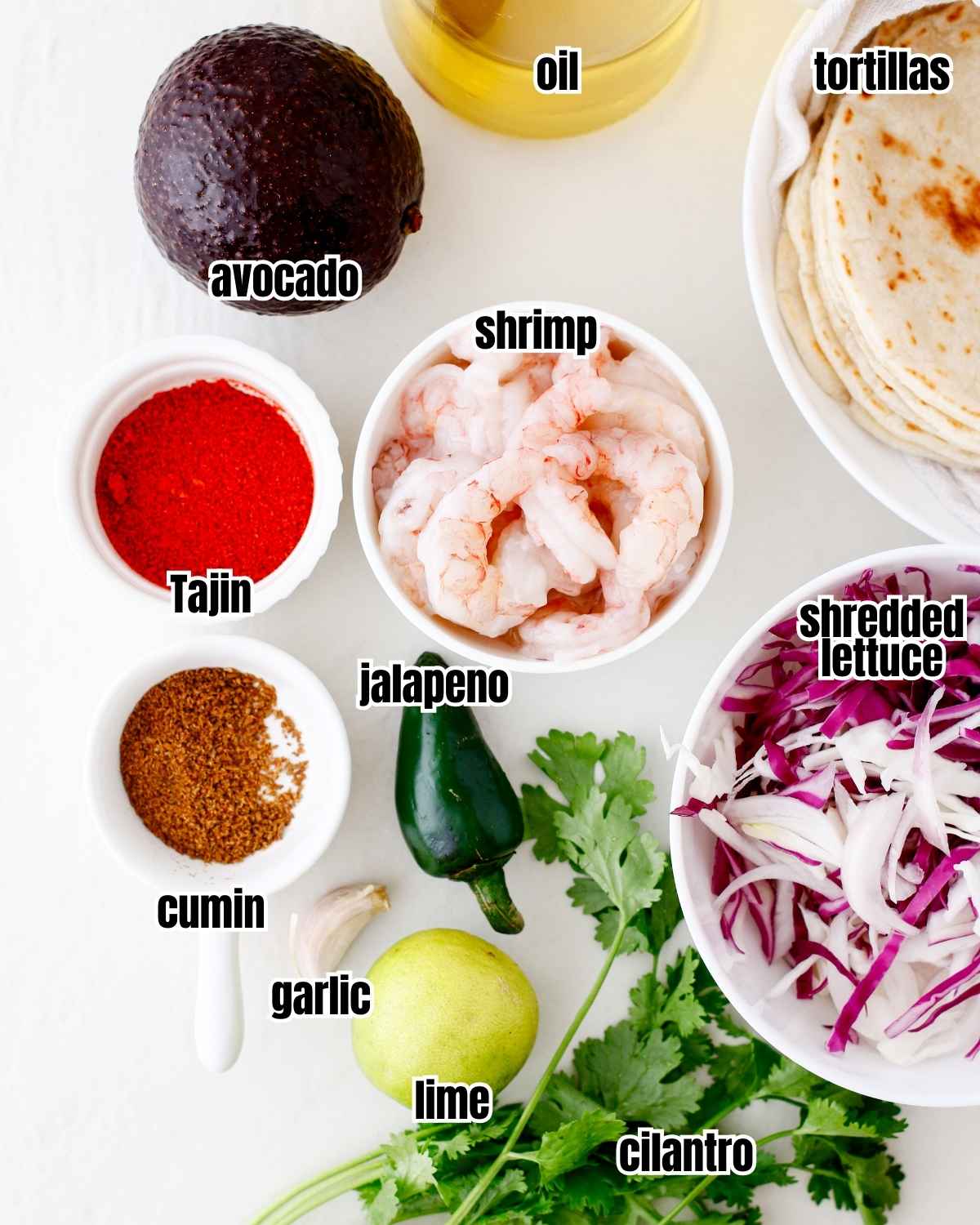 - 📋Main ingredients: Shrimp, tortillas, avocados, lime, jalapenos, cilantro, seasonings, oil and toppings.