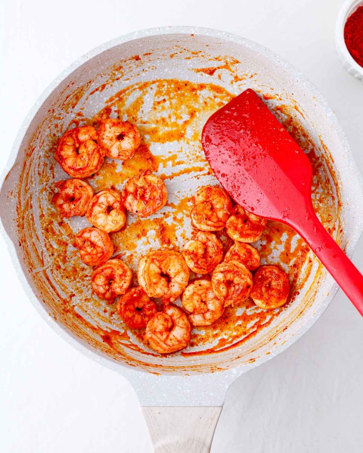 Step 1: Pan fry the shrimp in a bit of oil along with the Tajin seasoning. Remove and set aside.