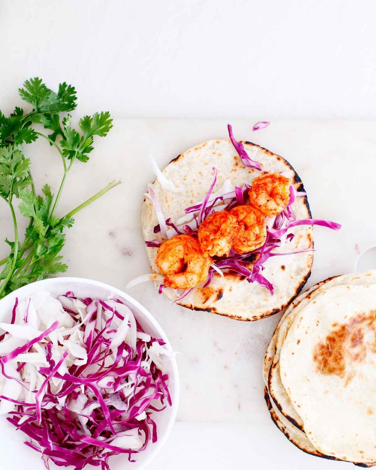 - I skipped the cheese here, but you can also top the shrimp tacos with some Cotija cheese or Mexican cheese blend.