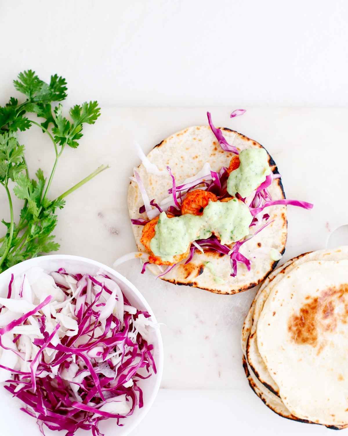 Veggies: I used some shredded red lettuce and sliced onions to fill up the tacos and an avocado, garlic and jalapenos for the spicy avocado sauce.
